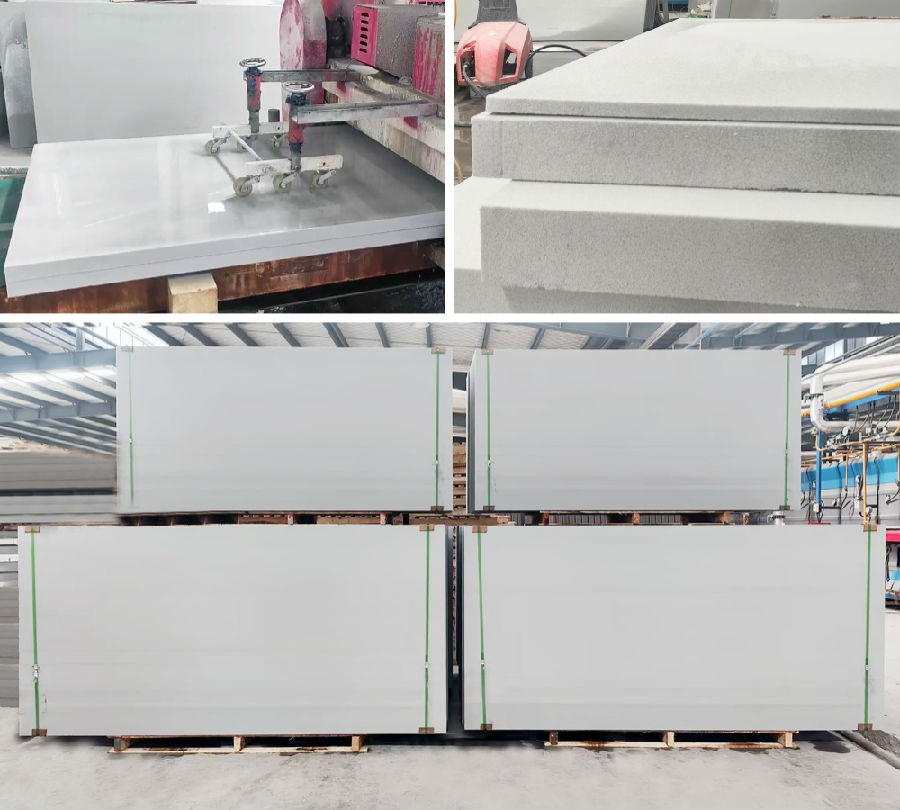 通過對原料成分的全元素化學(xué)分析,按照科學(xué)模擬的新配方化學(xué)成分要求,采用正交分解法組織配方,將原料重組的價值與潛力充分發(fā)揮,具有比重輕、白度高、抗壓強度大等一系列突出優(yōu)勢。經(jīng)專業(yè)測試認(rèn)證:生產(chǎn)1800×3000mm,厚度80-150mm規(guī)格的發(fā)泡陶瓷板時,比重僅為0.38-0.40g/cm3,應(yīng)用時可大幅降低建筑負(fù)重;白度達36-40度,色澤純凈均勻;抗壓強度達7.5-9.0MPa。此外,薄片切割可輕松對剖、無毛刺、無崩邊崩角、絲滑順暢,有效提升加工效率、減少浪費,為行業(yè)樹立了發(fā)泡陶瓷工藝新標(biāo)杠。